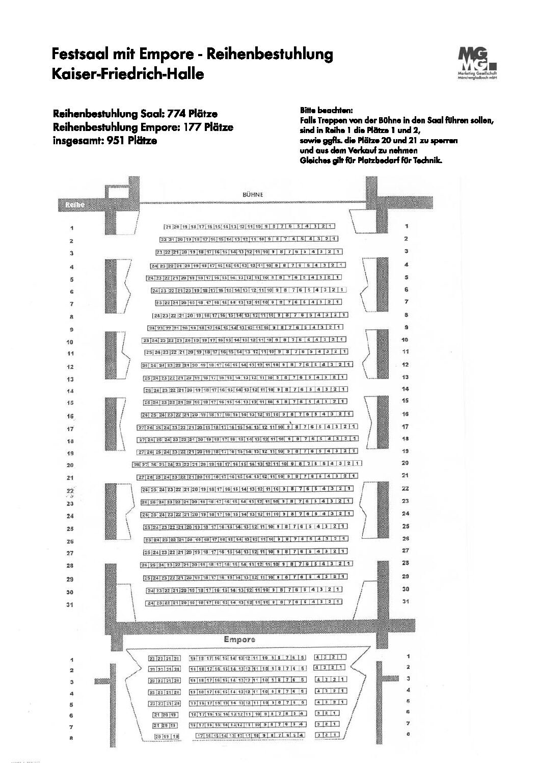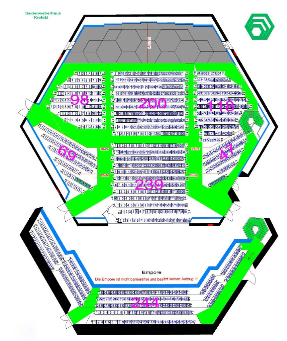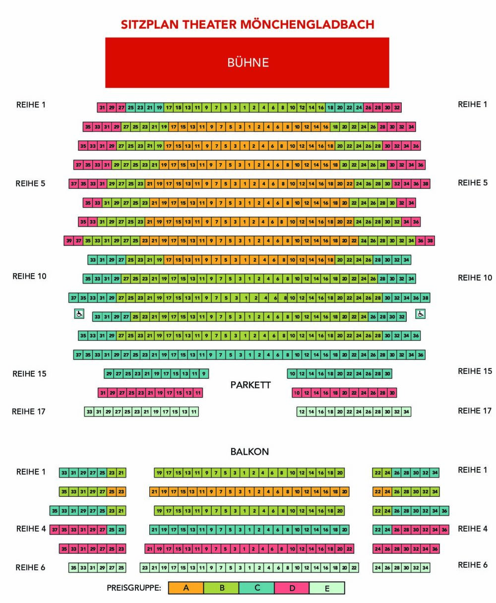 Nehmen Sie Platz! Hier finden Sie die Pläne unserer Sitzaufteilung im Theater Krefeld und Theater Mönchengladbach. Klicken Sie auf den jeweiligen Saalplan bzw. Sitzplan, um das PDF zu öffnen. Bitte beachten Sie, dass es aufgrund von Schutz- und Hygienemaßnahmen zur Eindämmung des Coronavirus weiterhin zu Einschränkungen der Platzkapazität kommen kann.