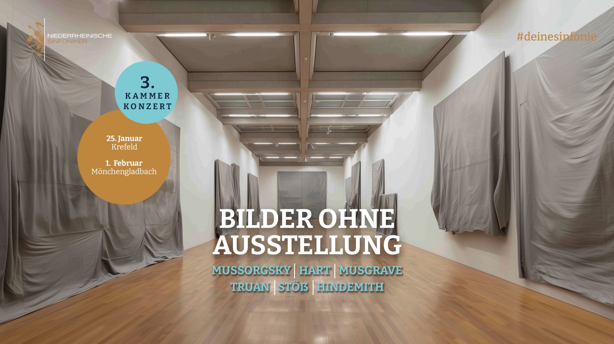 In Anlehnung an Modest Mussorgskys berühmten Zyklus Bilder einer Ausstellung haben die Musiker des sinfonikereigenen Bläserquintetts NR5 das dritte Kammerkonzert Bilder ohne Ausstellung benannt. Mit einem Auszug aus diesem populären Werk – bearbeitet für ihre Besetzung Flöte, Oboe, Klarinette, Horn und Fagott – eröffnet der Vormittag auch. Und bereits hier zeigt sich: Das Publikum erlebt ein sehr bildhaftes Programm, ohne dass reale Bilder zu sehen sind. Stattdessen gelingt es der Musik, vor dem inneren Auge des Hörers Gemälde entstehen zu lassen. Dabei beweist das Kammerkonzert, wie vielfältig diese „hörende Sehen“ sein kann: „Modest Mussorgsky vertont die Eindrücke eines Museumsbesuchs, Thomas Stöß hingegen Bildergeschichten, Paul Hart schreibt typische Musik zu Comicfilmen – The Chase ist komponiertes Kopfkino –, Thea Musgrave komponierte Opernschauspiel, Paul Hindemith wiederum schuf ein assoziationsstarkes Werk, bei dem für jeden individuelle Bilder entstehen.“, erklärt Solofagottist Philipp Nadler zu der Programmauswahl.