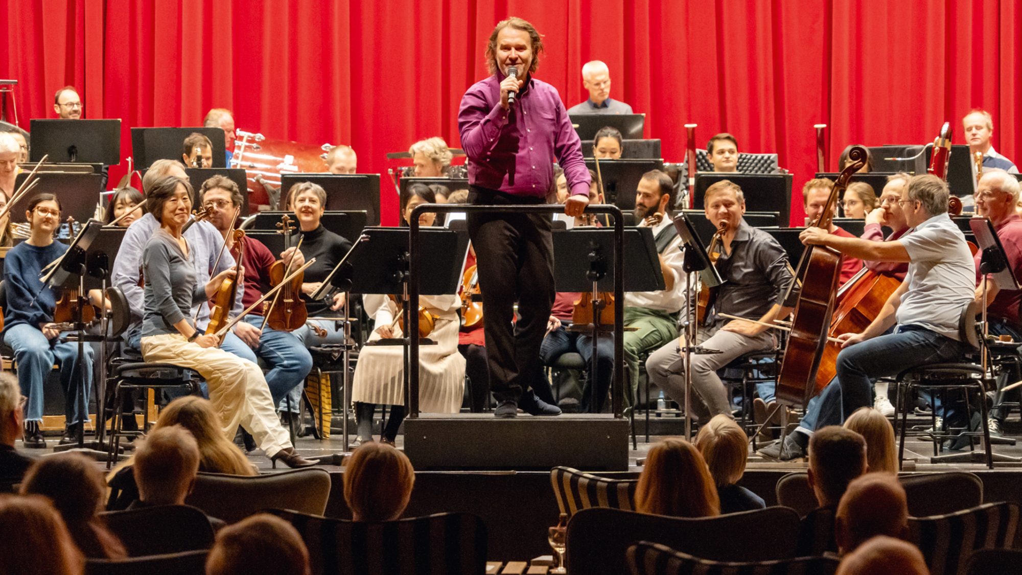 Neu in der Spielzeit 2025/26: Im Anschluss dürfen Sie gerne noch kurz sitzenbleiben und unserer Solohornistin Cecilie Marie Schwagers im Gespräch mit jeweils einem anderen Kollegen lauschen. So haben Sie die Gelegenheit, in wechselnden Interviews einzelne Sinfoniker besser kennenlernen. Den Anfang machen am 1. September Kontrabassist Georg Ruppert und am 2. September Konzertmeisterin Chisato Yamamoto.